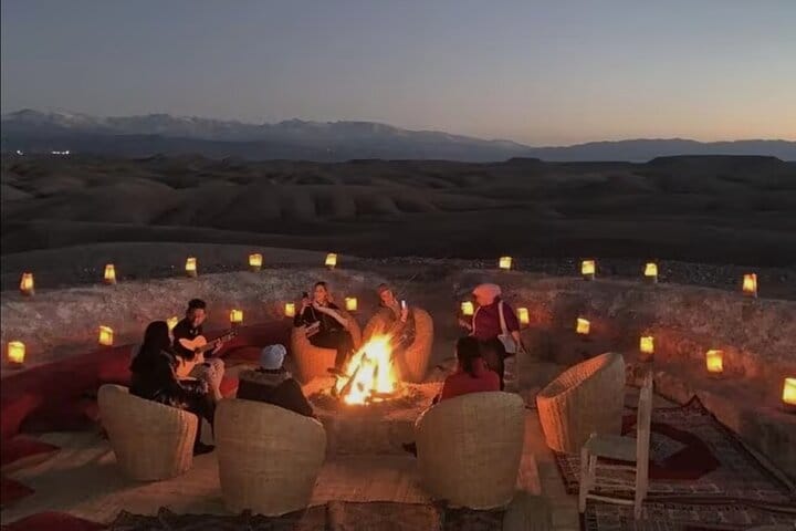 As night falls, be mesmerized by a thrilling fire show and lose yourself in the enchanting rhythms of live Berber music. This experience combines luxury with purpose, offering more than just a tour—it's an ethical travel adventure. Enjoy a serene camel ride at dusk, connecting with the desert's timeless beauty. From the stunning scenery and delicious food to the vibrant entertainment and meaningful cultural impact, this Agafay Desert evening creates unforgettable memories that will last a lifetime.