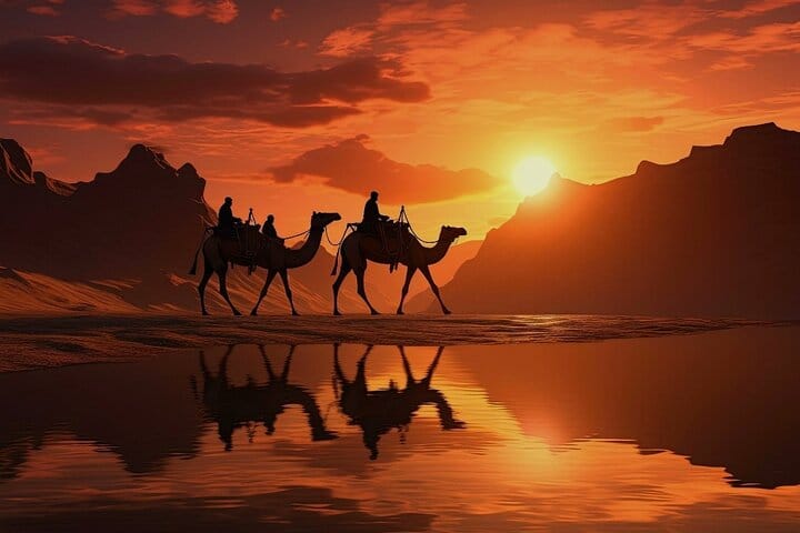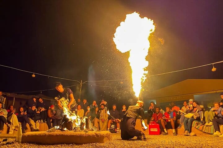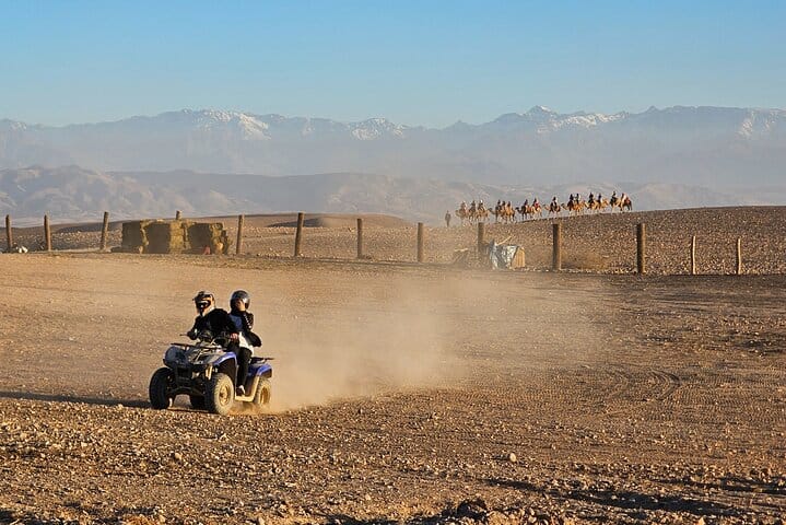 Experience an unforgettable Agafay Desert evening: feel the thrill of a quad bike ride, unwind on a sunset camel trek, savor dinner under the stars, and be captivated by a mesmerizing fire show. All in one seamless adventure