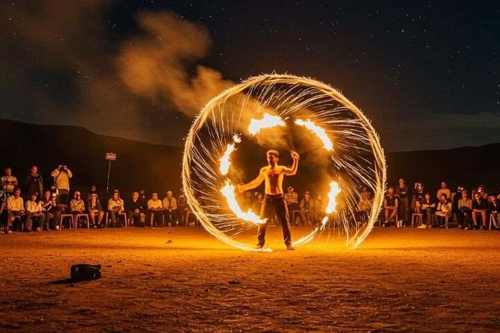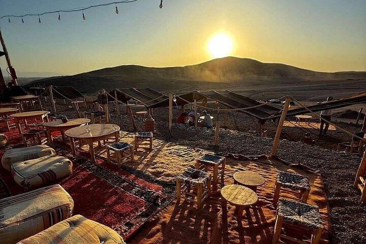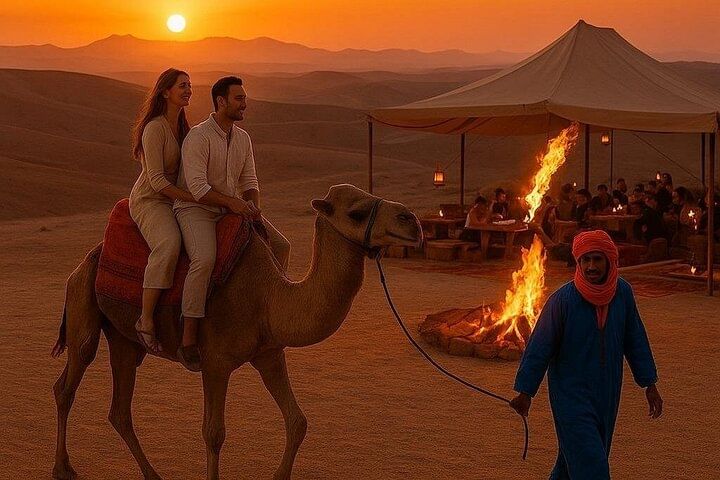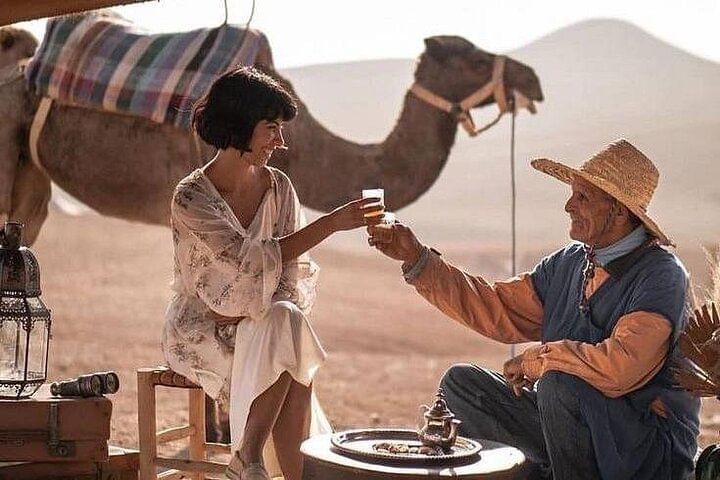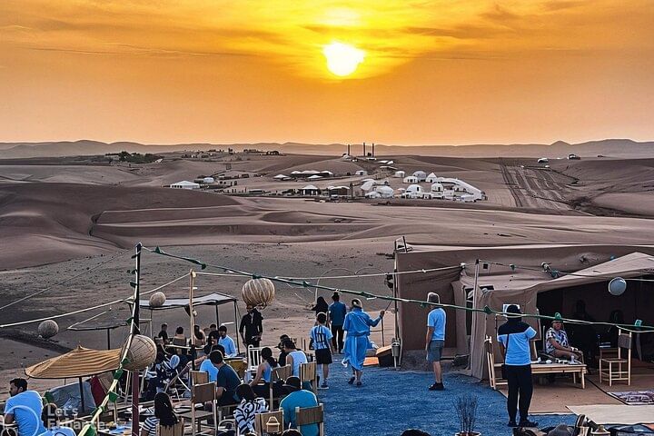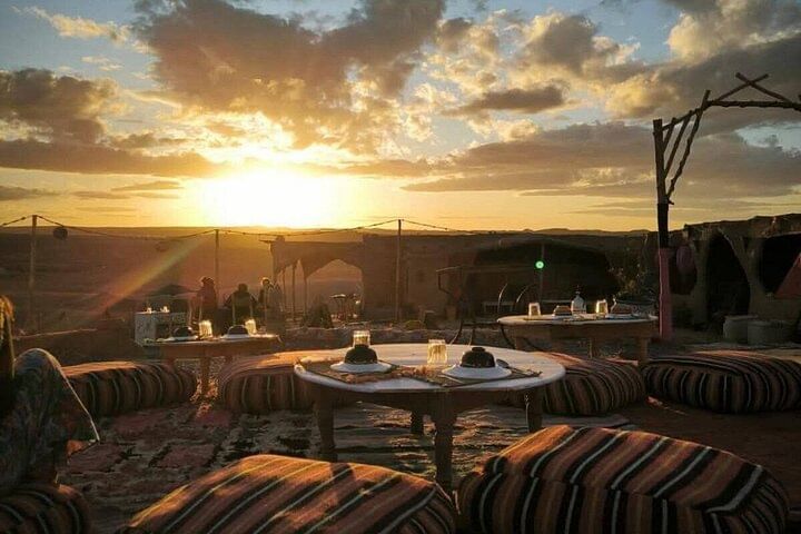 Sit down to a three-course dinner in the desert with this private dining package for couples, families, or groups. This tour includes round-trip transportation from your hotel or riad,