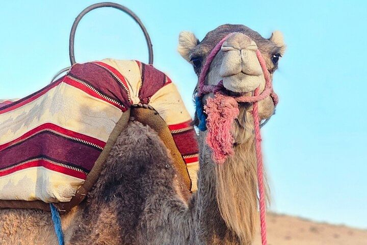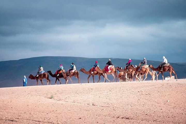 Marrakech: desert agafay sunset dinner, camel ride with fire show