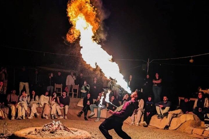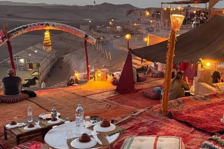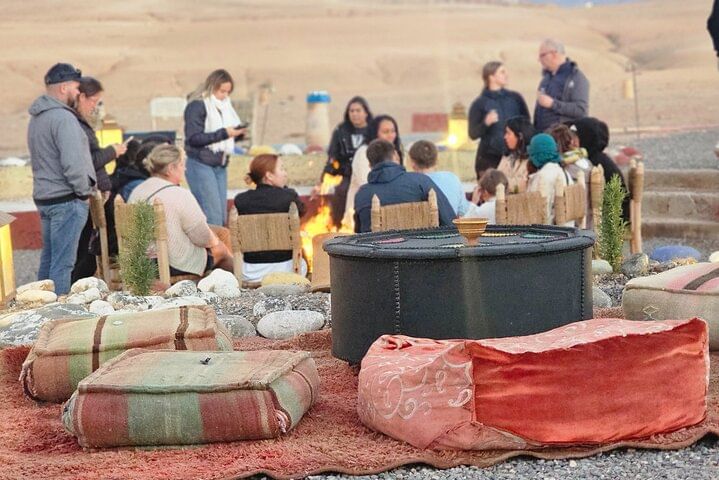 As night falls, be mesmerized by a thrilling fire show and lose yourself in the enchanting rhythms of live Berber music. This experience combines luxury with purpose, offering more than just a tour—it's an ethical travel adventure. Enjoy a serene camel ride at dusk, connecting with the desert's timeless beauty. From the stunning scenery and delicious food to the vibrant entertainment and meaningful cultural impact, this Agafay Desert evening creates unforgettable memories that will last a lifetime.